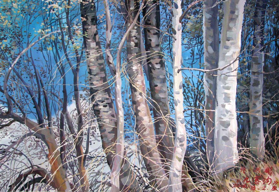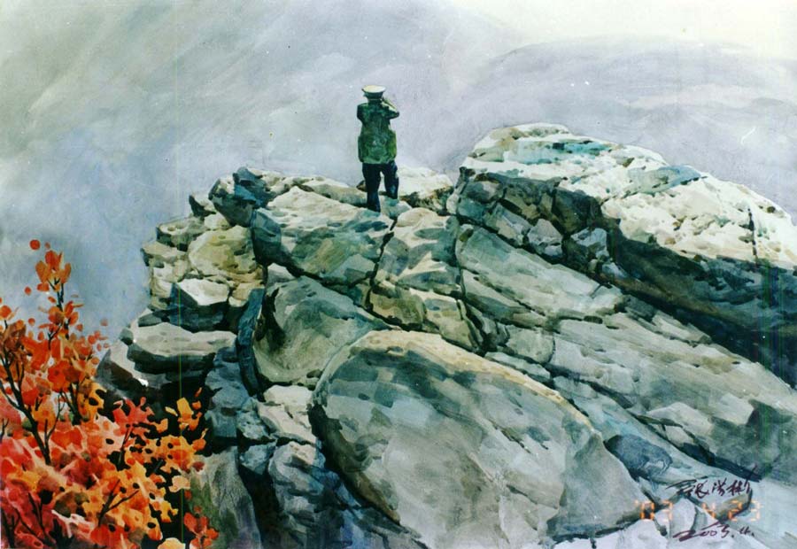 水彩畫《獨立寒秋》107×75cm 2003年
