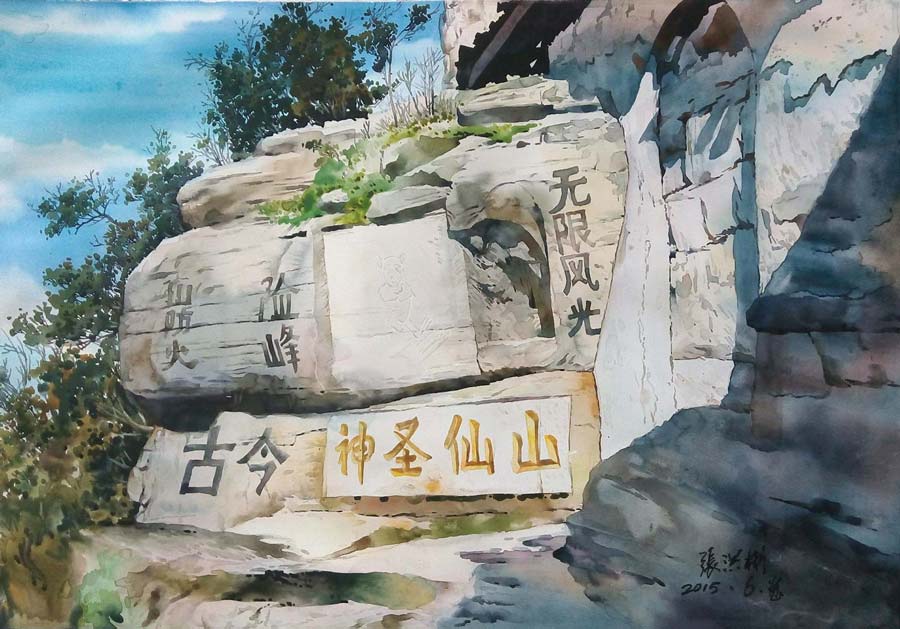 水彩《永川石筍山》79×55cm 2015年