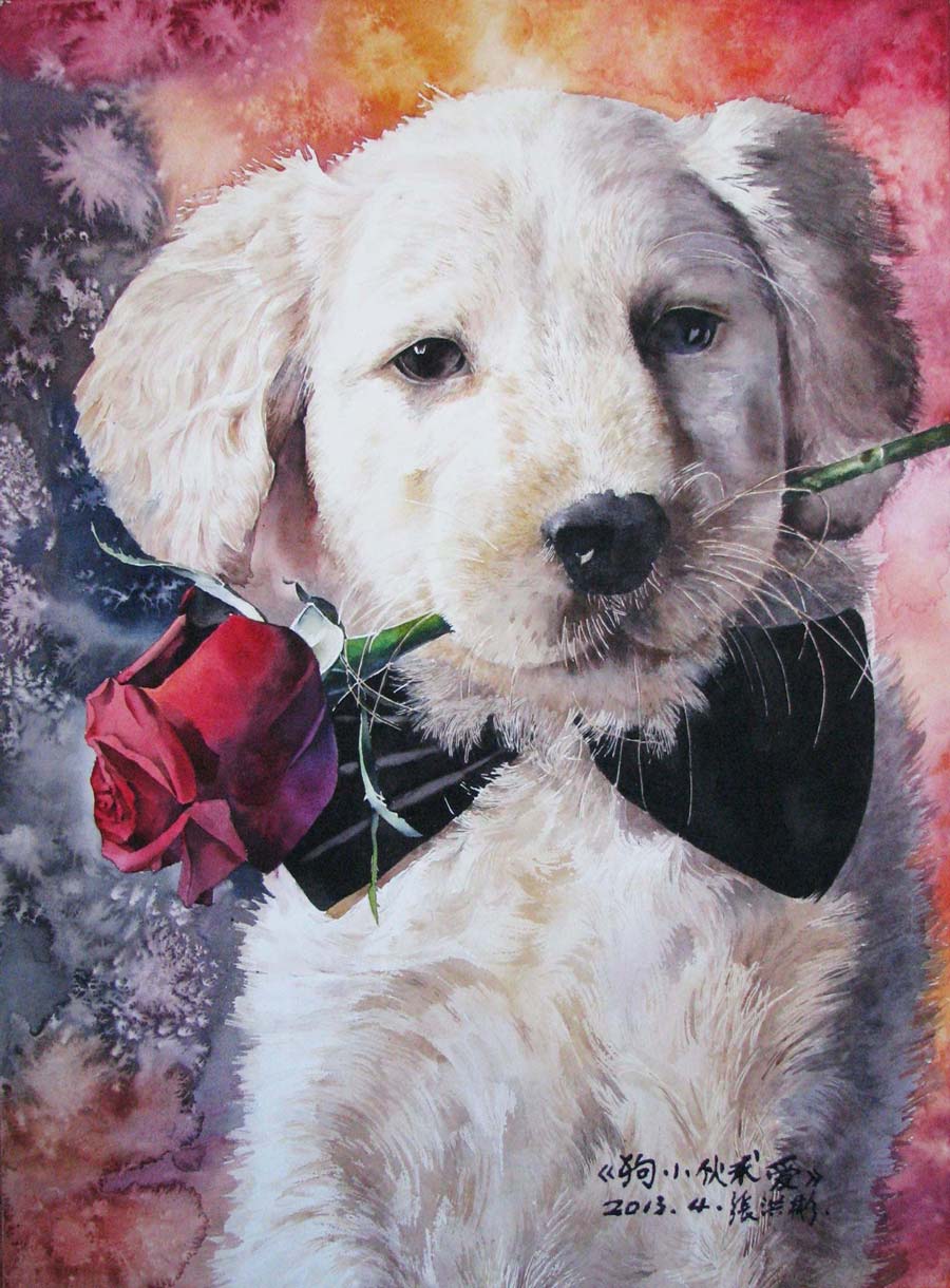 水彩《狗小伙求愛》76×53cm 2013年