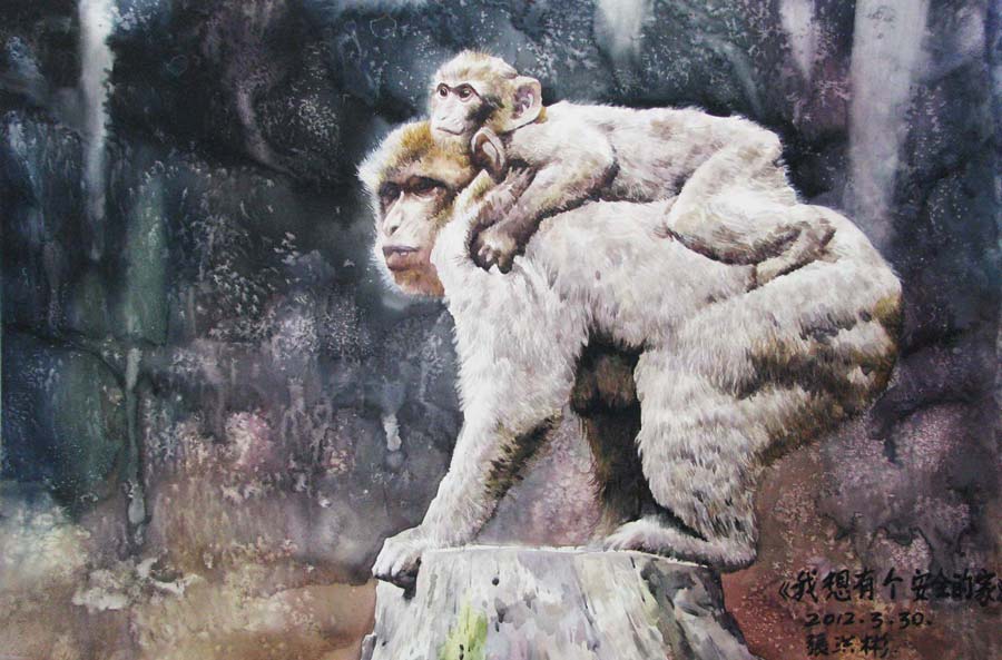 水彩《我想有個安全的家》76×53cm 2012年