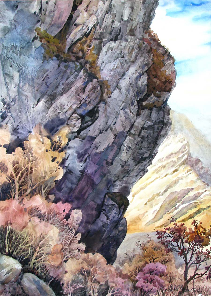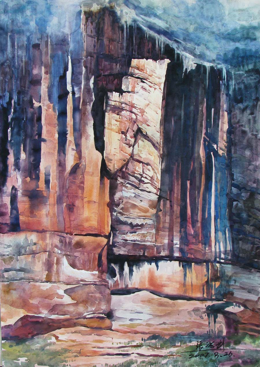 水彩畫《烏江石壁》107×75cm 2005年